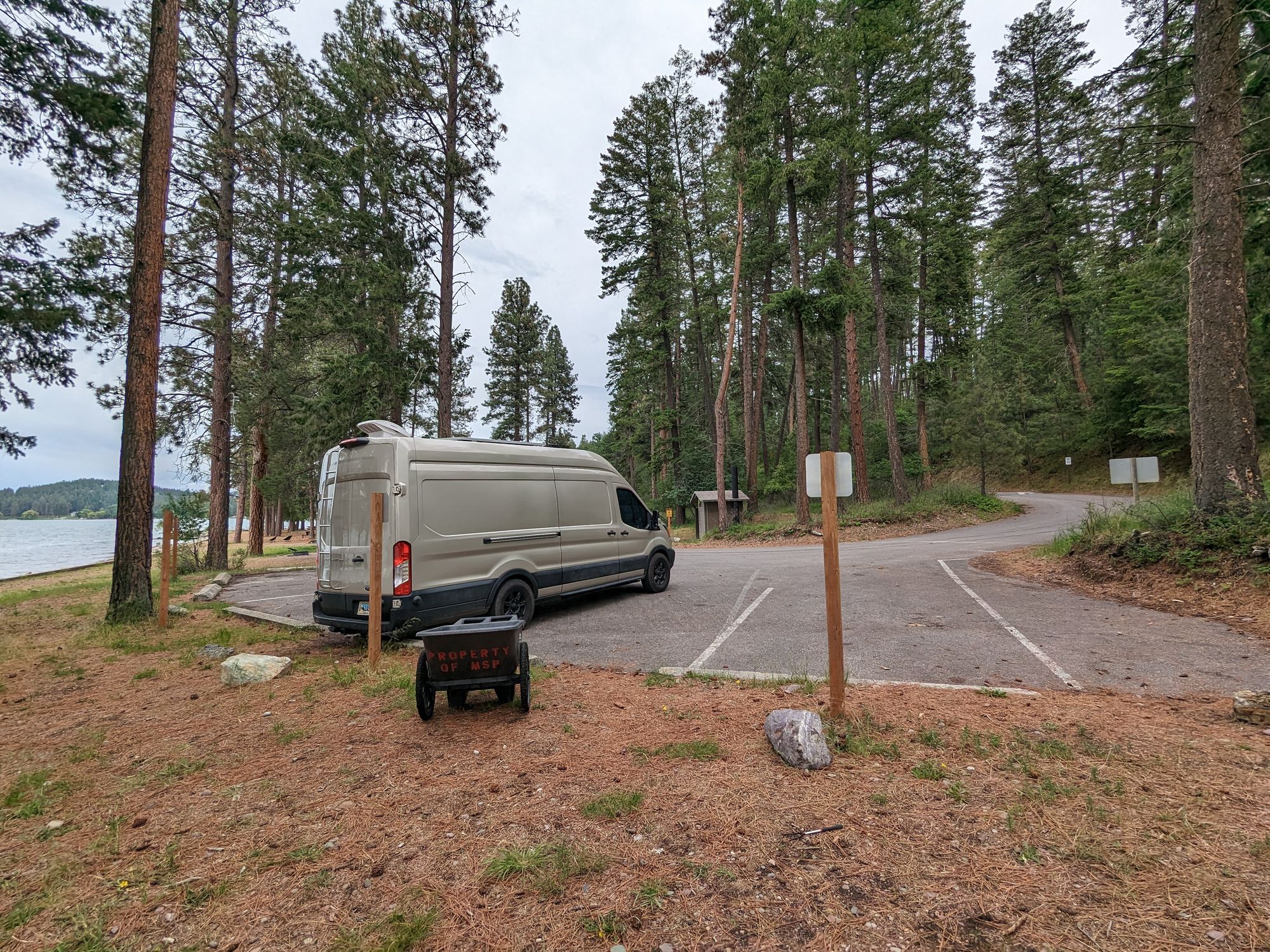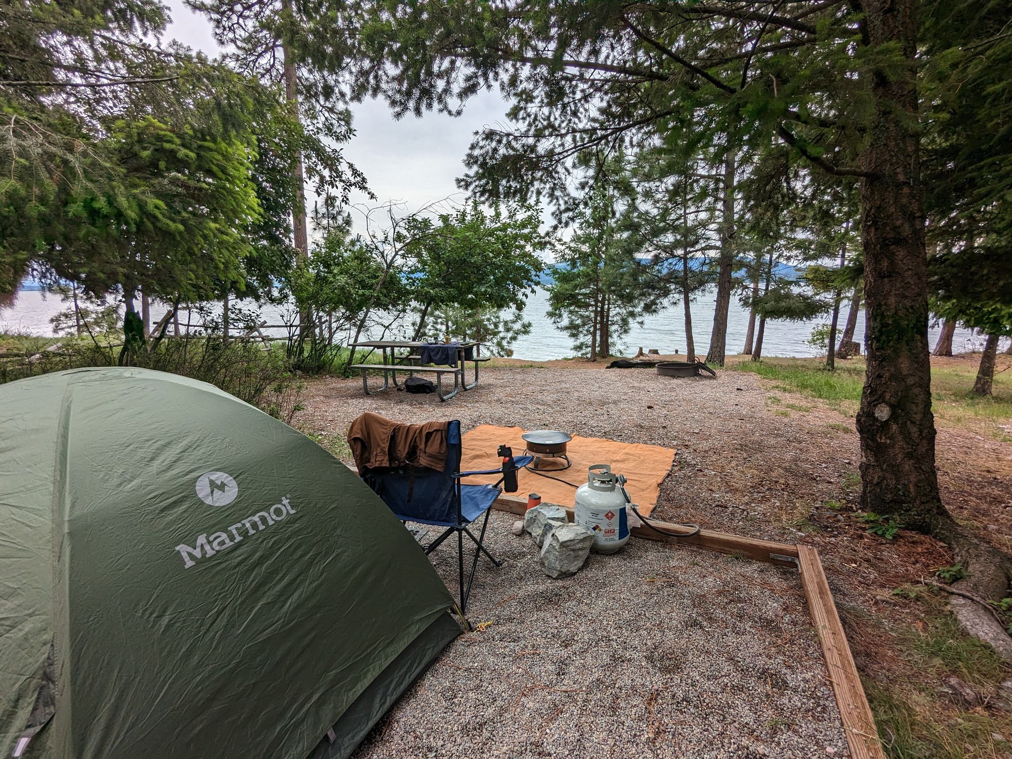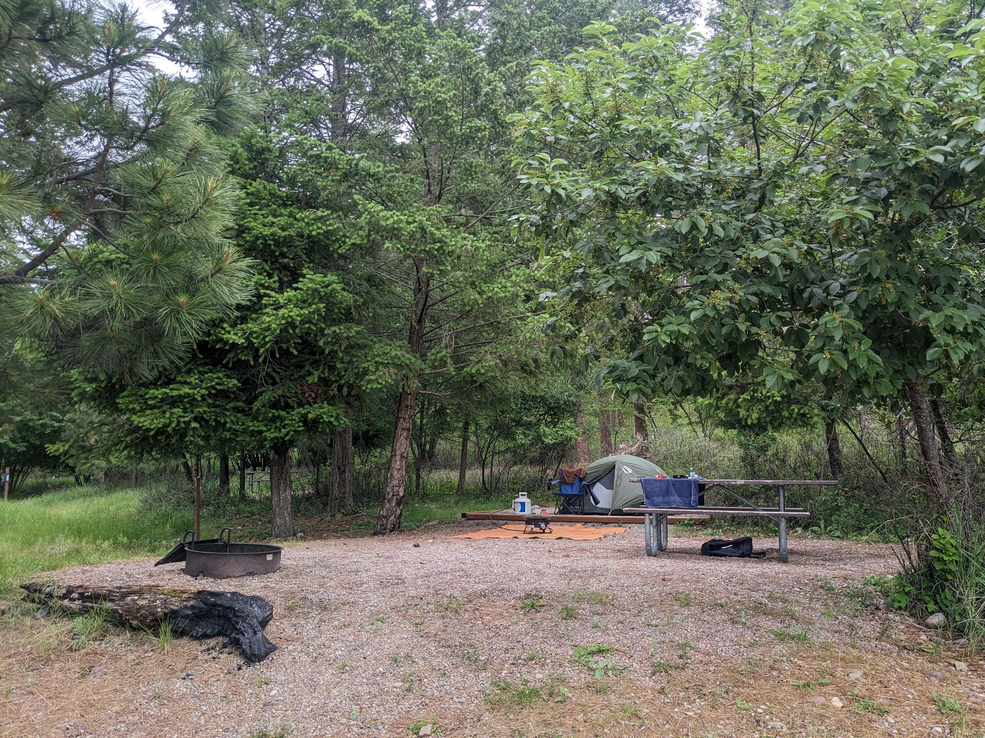The tent sites, strategically arranged, offer a comfortable retreat. Nature's gift, the clean and fresh-looking water, beckoned me to immerse myself in its embrace. Without hesitation, I succumbed to its allure, taking a plunge only an hour after my arrival. As the early June sun graced the horizon, I found myself in the company of solitude, having the entire tent area to myself. However, it's worth noting that privacy might be compromised when the campground reaches full capacity, as there is limited seclusion between the sites. Fear not, though, as the parking area for the tent sites is conveniently located nearby, providing ample space to accommodate our sizable Landship Galactica effortlessly.