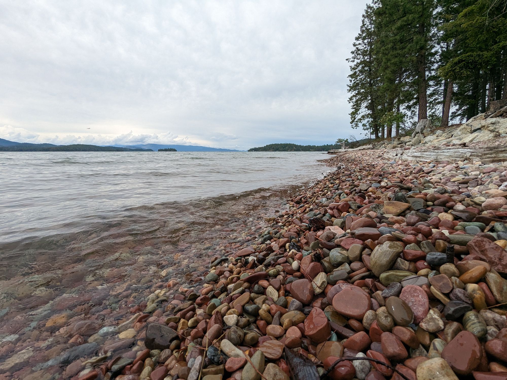 Upon arrival, I discovered a diminutive yet charming campground nestled by the water's edge. Despite its size, this haven boasts several exquisite spots that can be pre-booked. It's an idyllic setting where the interplay of land and sea mesmerizes the senses. As I stepped foot onto the beach, I was greeted by a breathtaking mosaic of multicolored rocks, each one bearing a unique hue. To my delight, the beach proved to be a safe haven, allowing me to traverse its shores and even indulge in a refreshing swim barefoot. The tranquility of the shoreline would surely make it a pleasant place for dogs to roam and frolic, both on land and in the crystal-clear waters.