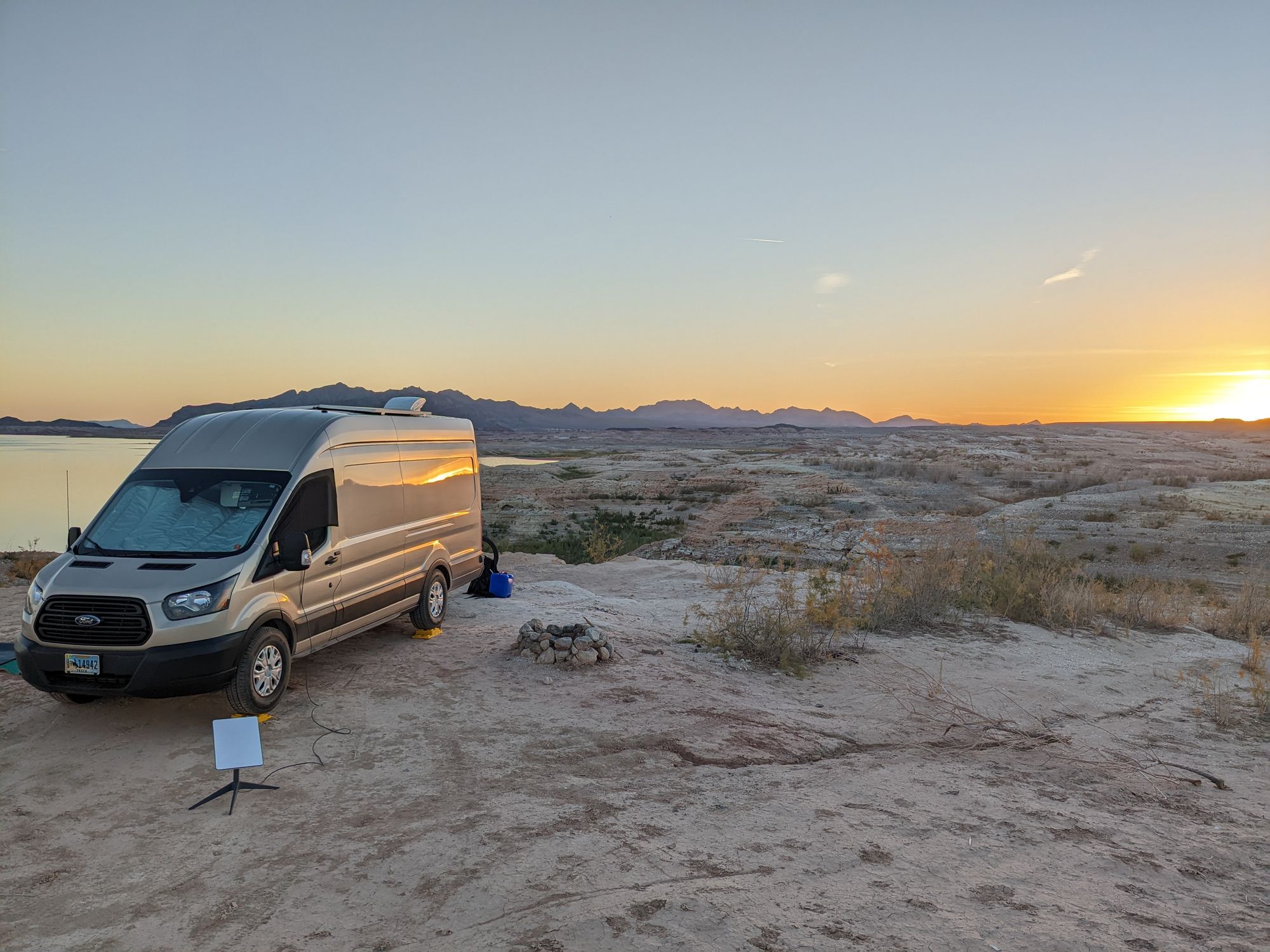 Lake Mead Recreational Area provides for seemingly endless camping options and depending on how agile your vehicle is you can obtain some very private locations. Many areas allow for 14 days before you need to move one. Cell signal can vary depending on location which is why I implement a 3 way redundant strategy to maintain communications aboard the Landship Galactica. (2 Cell phone networks and Starlink as backup).